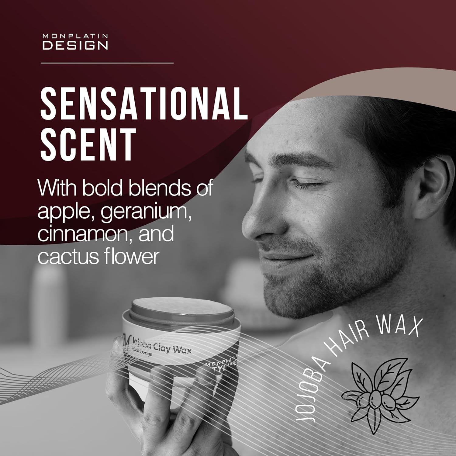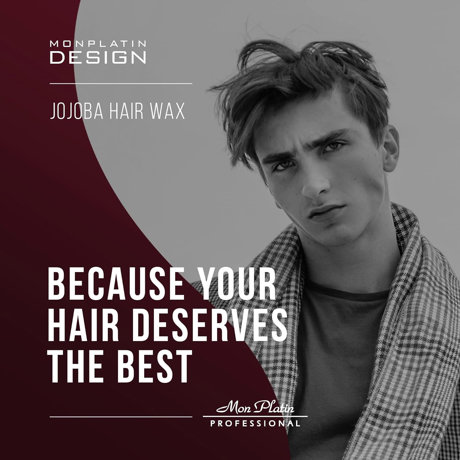 - NOURISHING TREATMENT: Say goodbye to dry, lifeless locks! Our Jojoba Clay Hair Wax is not just your average styling product; it's a nourishing treatment that showers your hair and scalp with organic jojoba extract goodness and smells divine, it's the ideal choice for your daily styling routine. Mon Platin men’s hair wax is easy to rinse out and leaves no sticky or greasy feeling, No residue, just well managed hair.