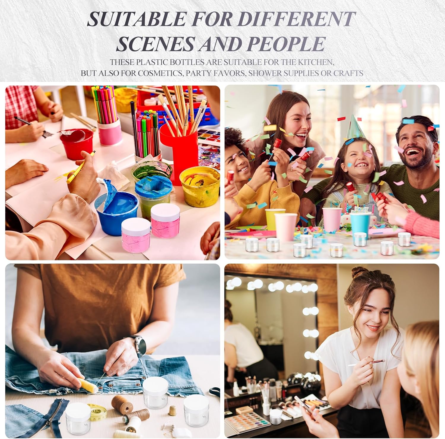 - Product size: each wide-mouth plastic containers jars measure 5.2 cm/ 2.05 inches in diameter, 3.3 cm/ 1.3 inches in height wide, the volume is 1 oz; These are empty jars, great for meal preparation, condiments, DIY crafts, creams, butters, lotions and others