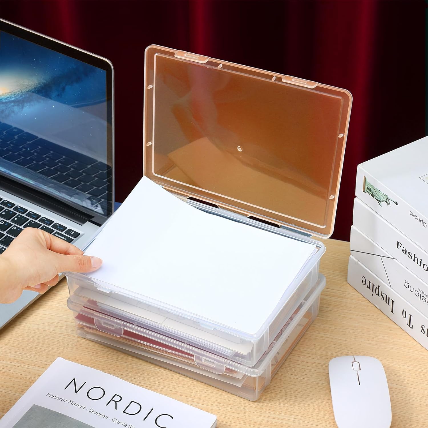 Qunclay 6 Pcs 10.6'' x 7.7'' x 2'' Plastic Storage Box with Lid Multipurpose Craft Organizers Plastic Containers Clear Pencil Case Art Satchel Storage Case for Beads Ornaments Crafts Accessories