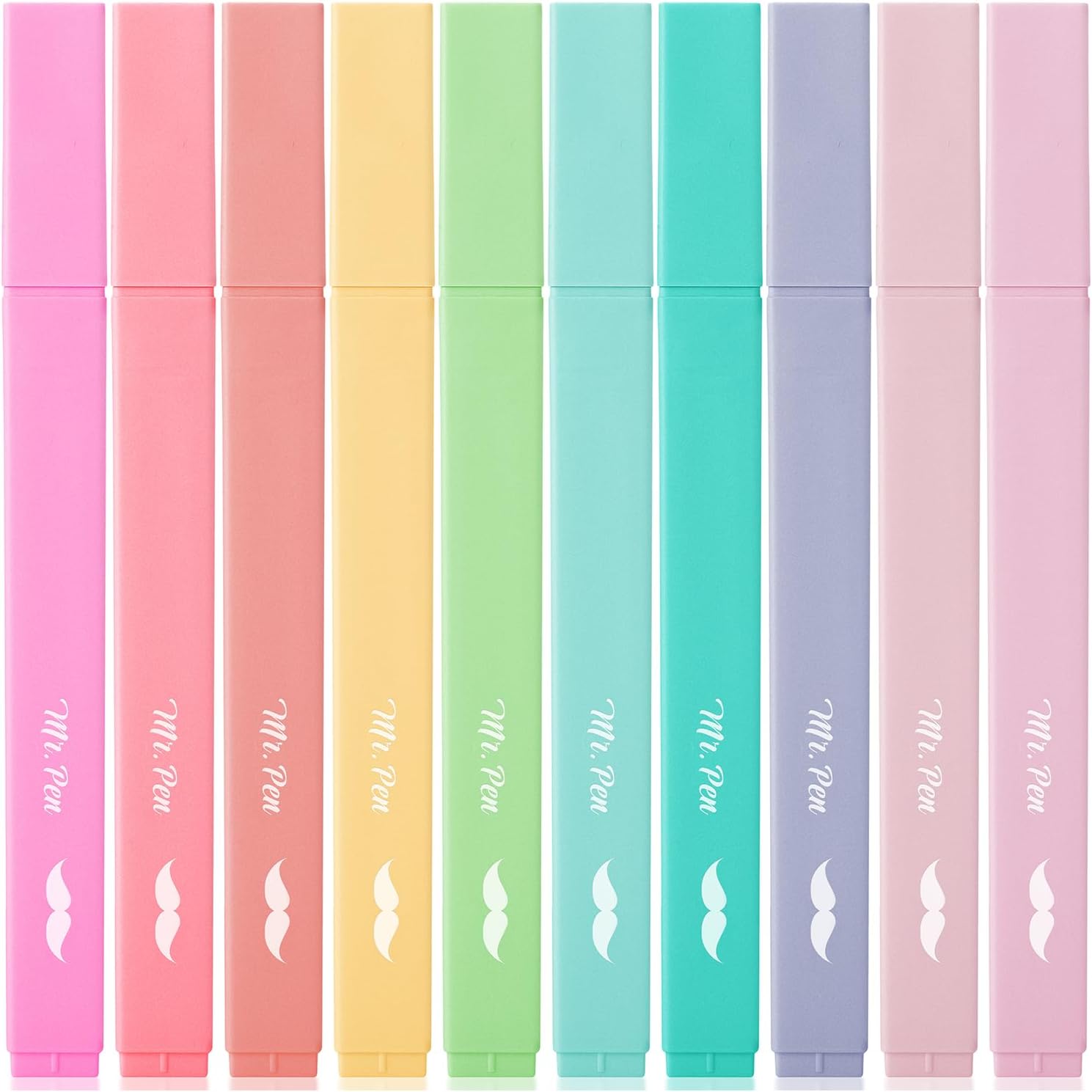 Mr. Pen- Aesthetic Highlighters, 10 pcs, Chisel Tip, Pastel Colors, Cute Highlighters Assorted Colors, Back to School Supplies
