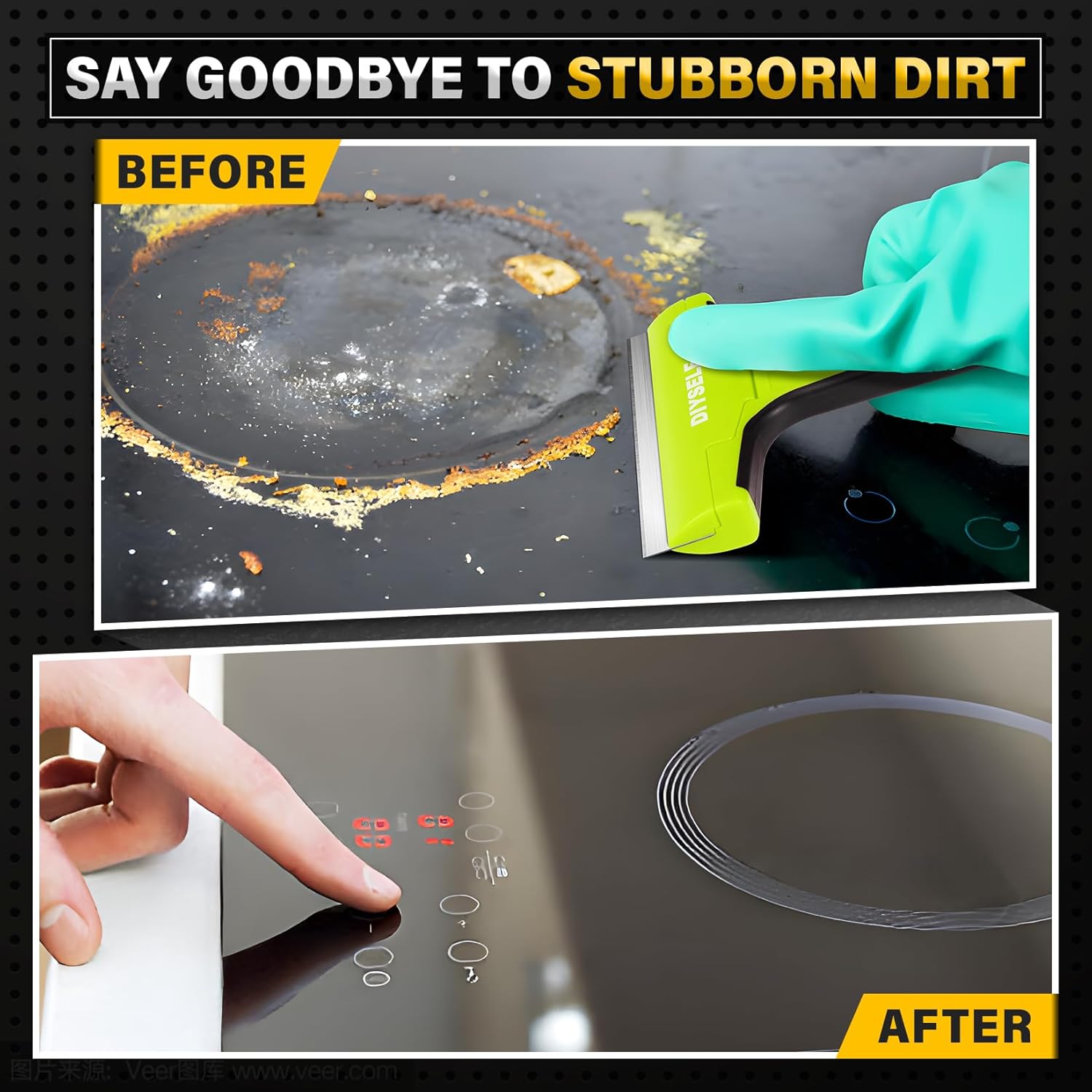 • Effortless Efficiency: Experience cleaning like never before with the ingenious design of our metal scraper. The 4-inch-wide razor blade ensures swift and thorough cleaning, covering larger areas in less time. Coupled with its ergonomic handle, cleaning becomes a breeze, saving you time and effort with every swipe.