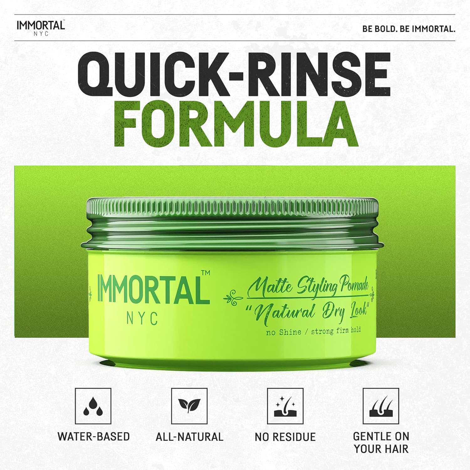 Immortal NYC Natural Dry Look Hair Wax - 8 out of 9 Holding Ability, Matte Finish - All Natural Water-Based Hair Wax for Men - No Residue, All Hair Types