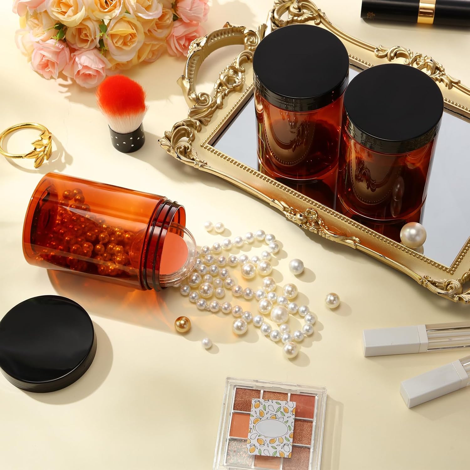 SATINIOR 100 Pcs Plastic Jars with Lids Small Containers Lids Wide Mouth Small Plastic Containers for Lotion Cream Rhinestones Body Butters Travel Storage(10 oz, Amber)