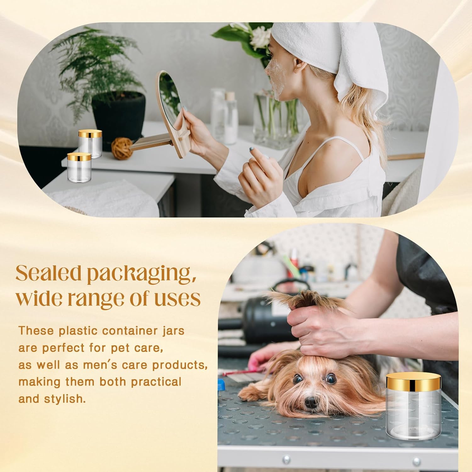 SATINIOR 24 Pieces Empty Clear Plastic Jars with Lids Round Storage Containers Wide Mouth for Beauty Product Cosmetic Cream Lotion Liquid Butter Craft and Food(Gold Lid,16 oz)
