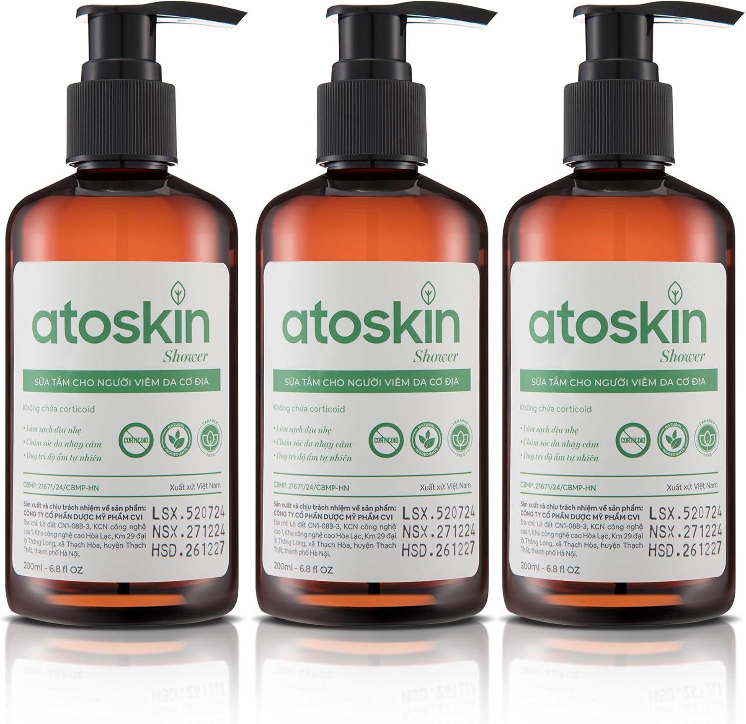 Atoskin Shower Gel (3 Pack) - for Eczema, Psoriasis, Dermatitis, and Anti-Itch Relief - Maximum Strength for Both Kids and Adults (20.4 oz)