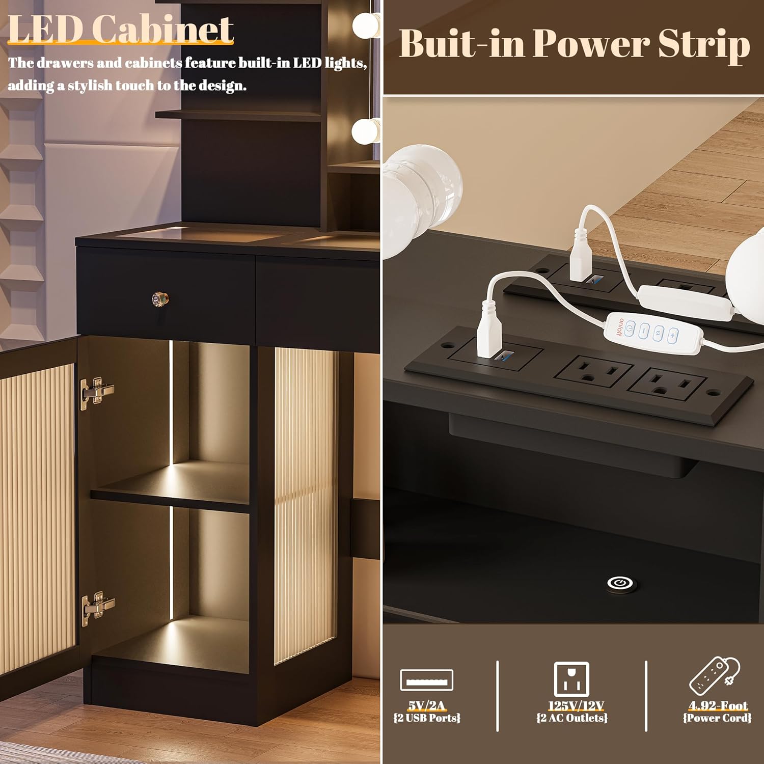 - 【Built-in Charging Station and Hair Dryer Stand】vanity with lights includes 2 standard electrical outlets, 2 USB ports, and a dedicated hair dryer stand, allowing you to conveniently connect and charge your hair tools, smartphones, tablets, and other devices.Stay organized and worry-free with our multifunctional girls vanity.
